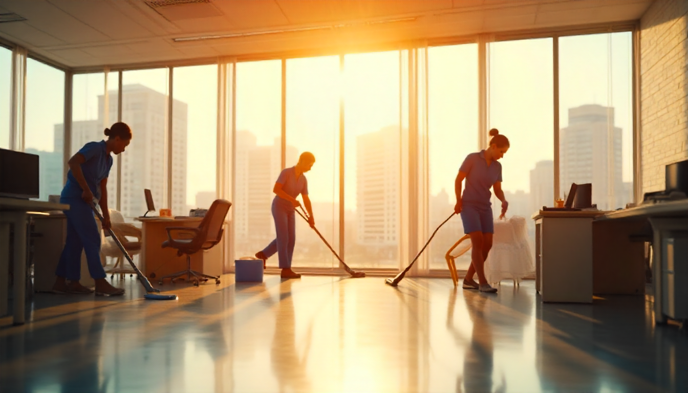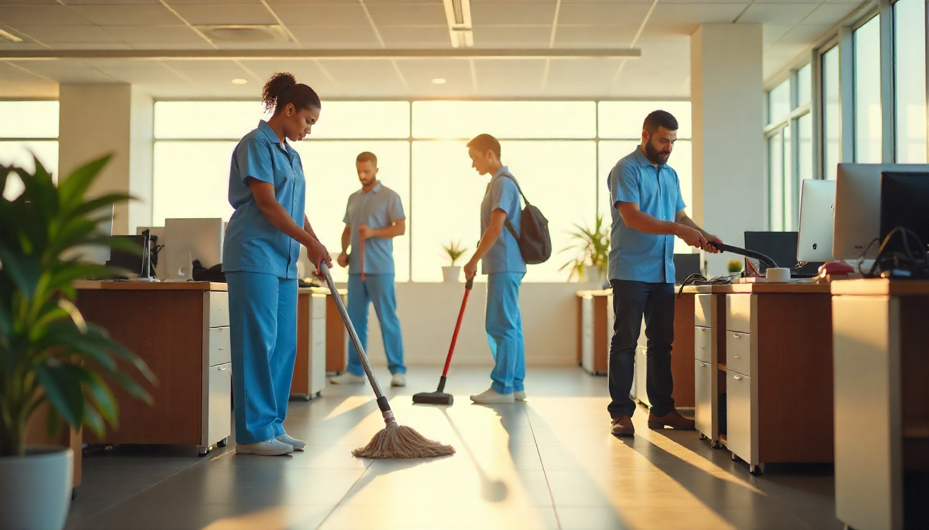 Commercial cleaners doing the job together